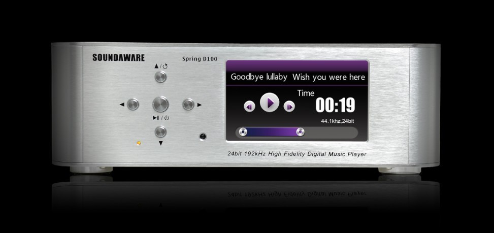 Spring D100 是采用SOUNDAWARE核心专利技术的最新一代高性能数字转盘,自主研发国际上极少数的最优化CPU+硬芯片双晶振硬解数字音频播放方案,经过多年研发,突破功能极限,完美实现SD,大硬盘,网络播放等各种功能,支持24bit 192khz WAV,FLAC以及APE音乐格式,CUE列表管理,后续升级可支持更多的功能以及音乐格式。